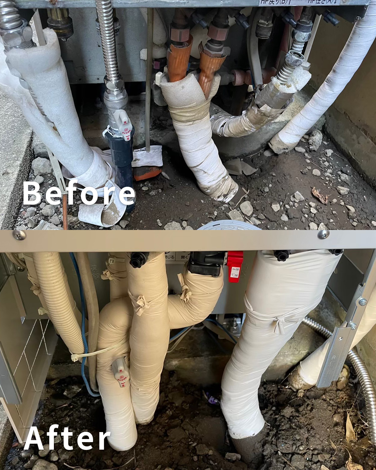 ほとんどむき出しになっていた配管も丁寧に修繕いたしました🙆