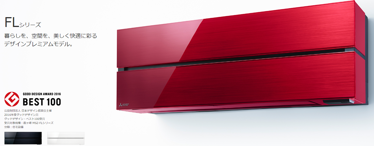 スタイリッシュで美しいスクエアのフォルムが特徴的な、三菱のデザインエアコン。