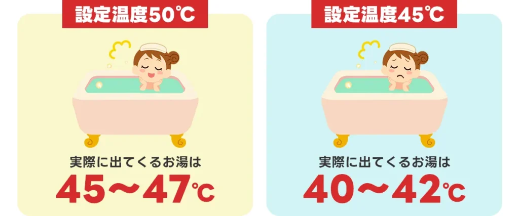 そのため、設定温度を50℃以上に設定することで、適温のお湯を快適に使えるようになります!