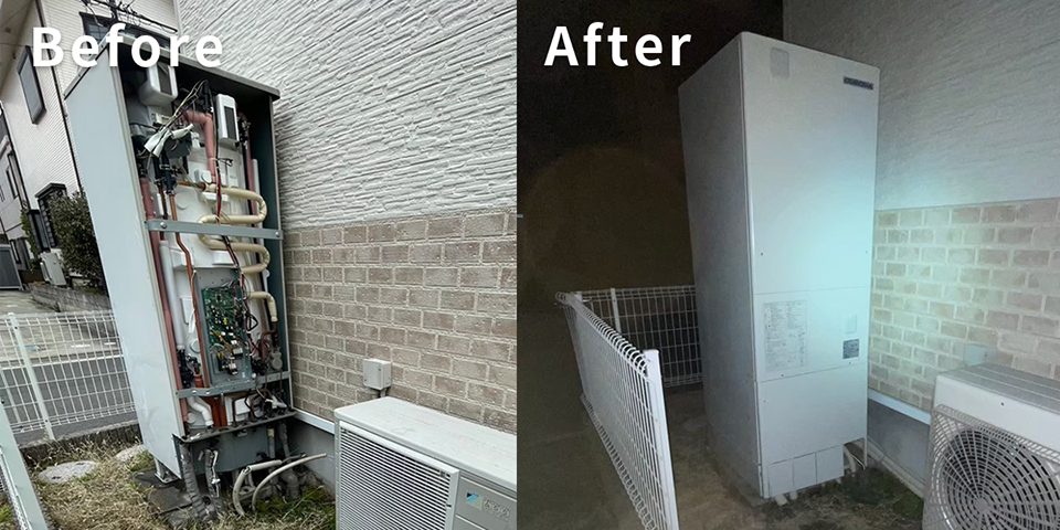 今回は、ダイキン製エコキュート【EQN37NFV】からコロナ製エコキュート【CHP-37AZ1】への交換工事の事例をご紹介しました!