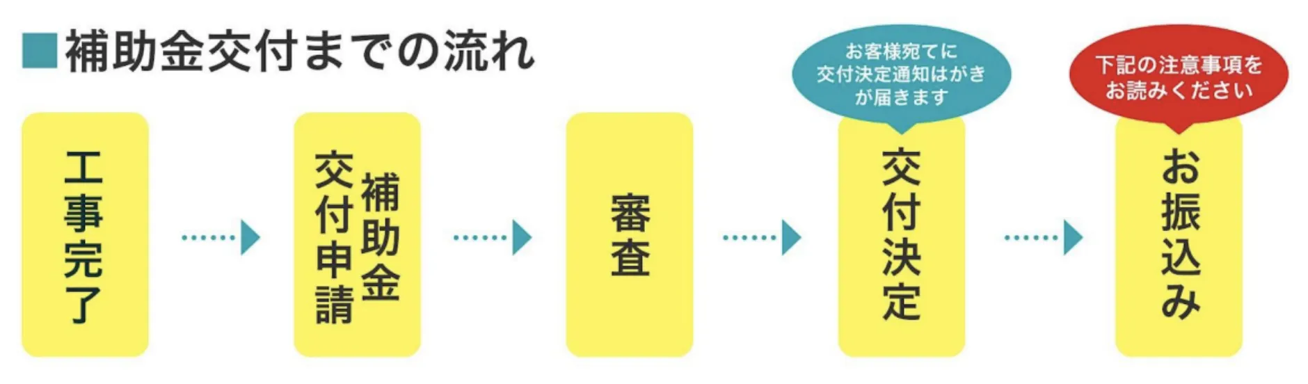 【工事完了→交付申請→審査→交付決定→お振込み]