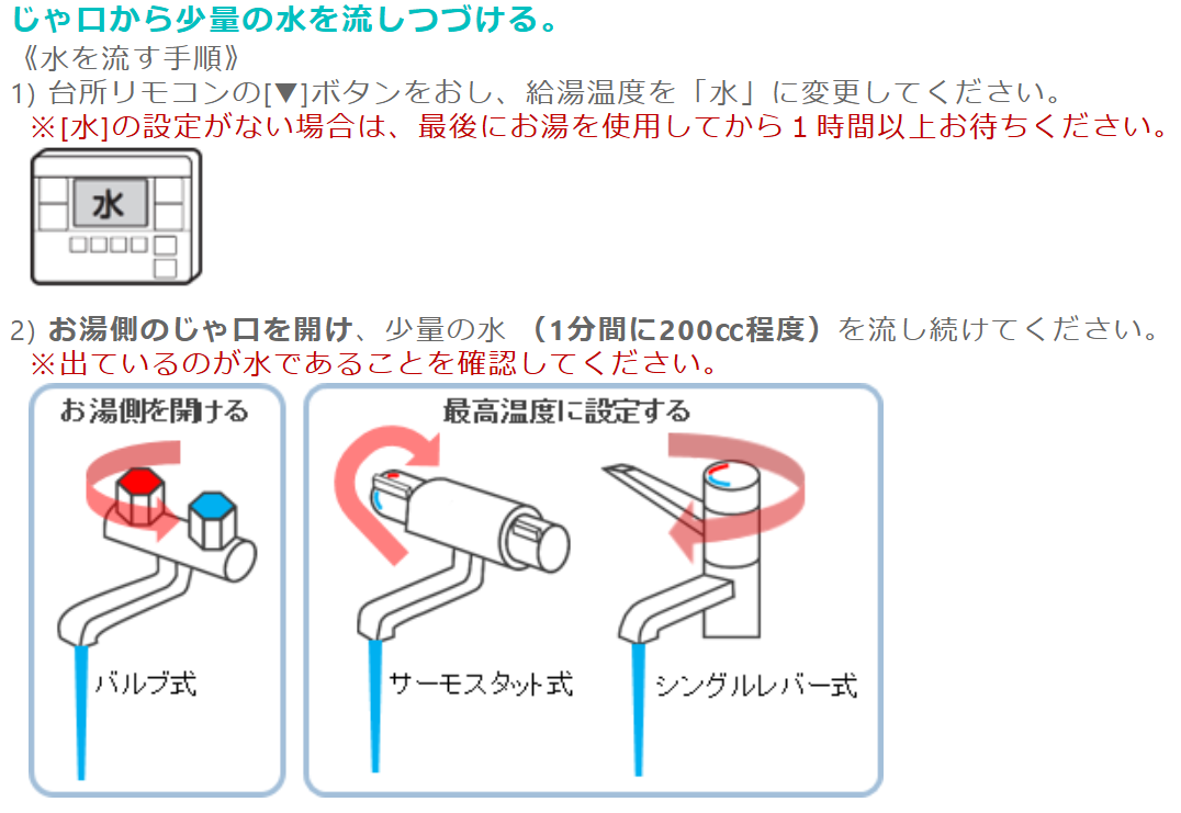 ・少量の水を流し続ける