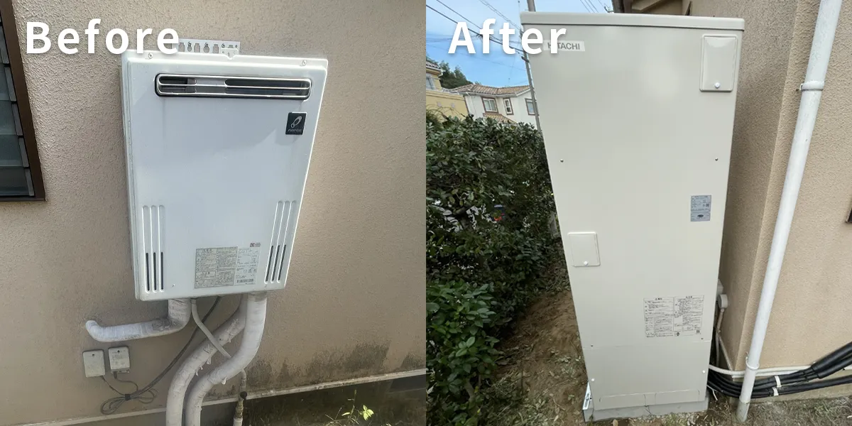 今回は、パーパス製ガス給湯器【GX-2000AW-1】から日立製エコキュート【BHP-FN37XU】への交換事例をご紹介しました!