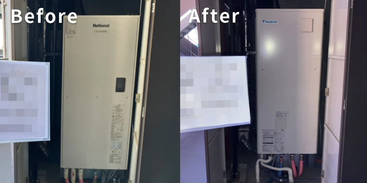 今回は、National製エコキュート【HE-37K3SMWS】からダイキン製エコキュート【EQA37YSV】への交換工事の事例をご紹介しました!