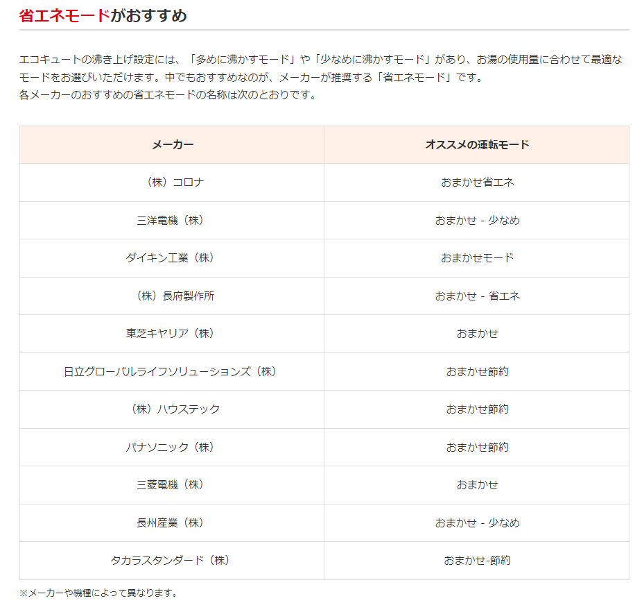 ▼各メーカーの省エネモードの名称はこちらの以下をご参照ください▼