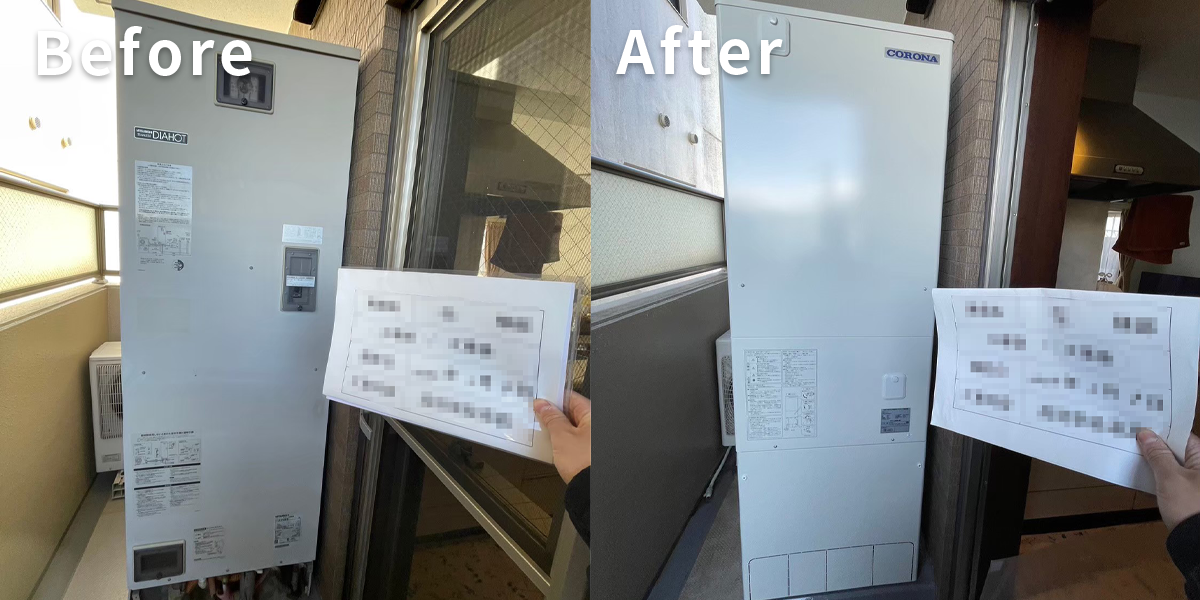 今回は、三菱製エコキュート【SRT-HP373WF-BS】からコロナ製エコキュート【CHP-37AZ1】への交換工事の事例をご紹介しました!