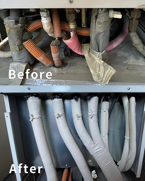 老朽化が目立っていた配管でしたが、綺麗に修繕させていただきました。