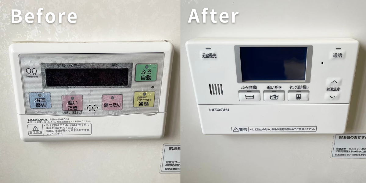 今回はコロナ製の角型【UWH-3717AD2U】から日立製の角型【BHP-FG37WU】への交換工事の事例をご紹介しました!
